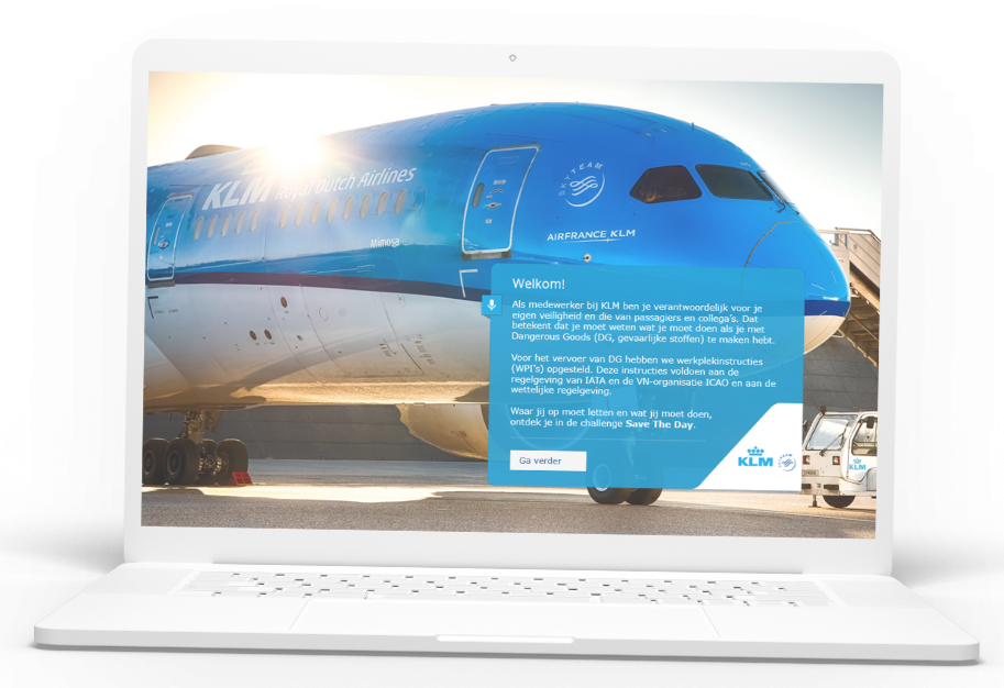 Medewerkers van Air France-KLM zijn verplicht om jaarlijks hun kennis te trainen. Met de vernieuwde e-learning hoeven zij niet jaarlijks de volledige lesstof te doorlopen, maar toetsen de deelnemers hun actuele kennis van het onderwerp op interactieve wijze. Pas als zij niet voor deze toets slagen, herhalen ze de module. Dankzij de leercampagne dalen de kosten voor de opdrachtgever en zijn de deelnemers minder tijd kwijt aan het bijhouden van kennis. Ondertussen blijft het kennisniveau over dit belangrijke onderdeel op peil.